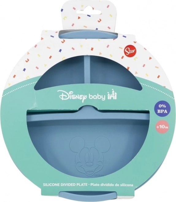 Ta silikonski krožnik je oblikovan s priljubljenim motivom Mickeyja Mousea, ki ga otroci obožujejo. S tremi ločenimi predelki je idealen za ločevanje različnih živil, kar olajša zdravo prehrano in preprečuje mešanje okusov.