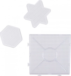 Prozorne podlage PLAYBOX za likalne perlice olajšajo ustvarjanje, saj lahko pod podlago vstavite predlogo. V paketu so 3 oblike – kvadrat, šestkotnik in zvezda. Podlage je mogoče med seboj povezovati in imajo eko oznako Nordic Swan, zato so idealne za ustvarjalno igro celotne družine.