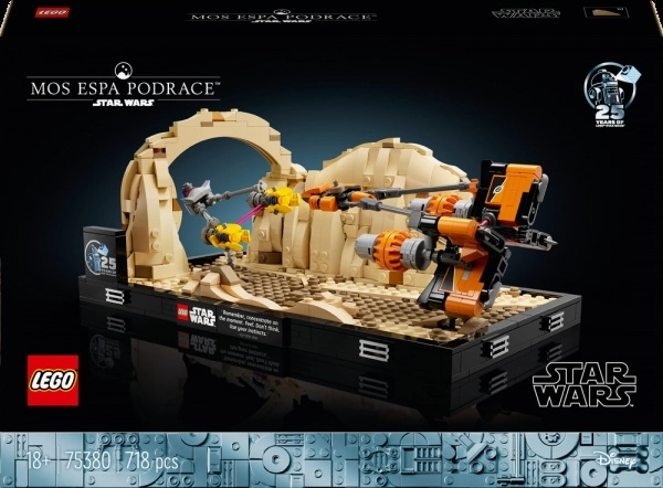 Doživite ikoničen prizor iz sveta STAR WARS z odraslim setom LEGO diorama: dirka podracerjev v Mos Espi. Podroben model prikazuje Anakinov podracer, ki v ozki soteski na Tatooinu zasleduje Sebulbo, dopolnjuje pa ga jubilejni element 25 let LEGO Star Wars in ploščica z navedkom Qui‑Gon Jinna. Odlična zbirateljska dekoracija za polico in sproščujoče sestavljanje za odrasle oboževalce.