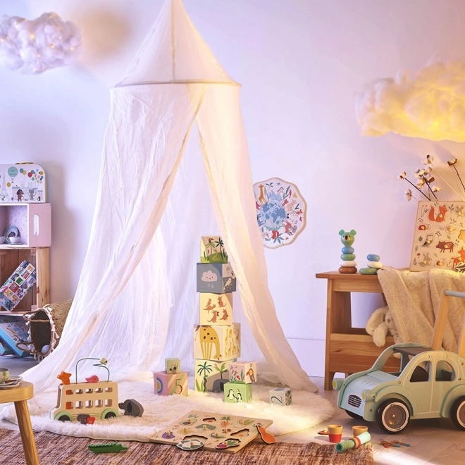 Trdna lesena plošča in koščki zdržijo vsakodnevno igro. Primerno od 18 mesecev, praktičen kvadratni format 30 × 2,5 × 30 cm se zlahka pospravi.