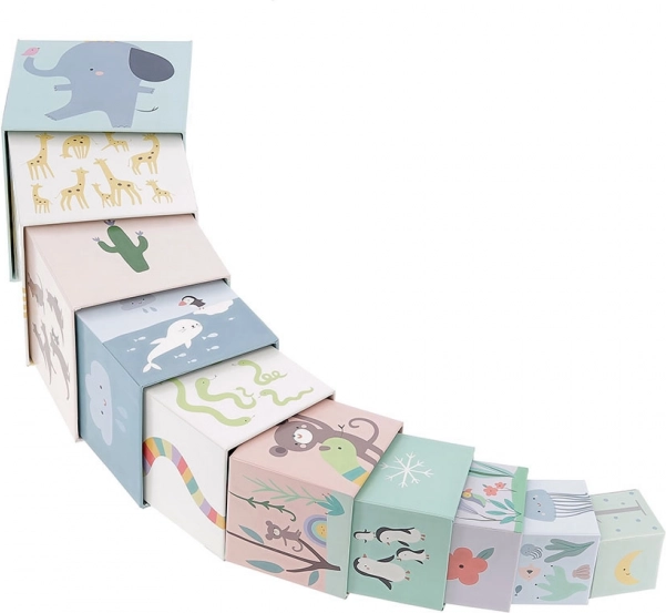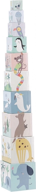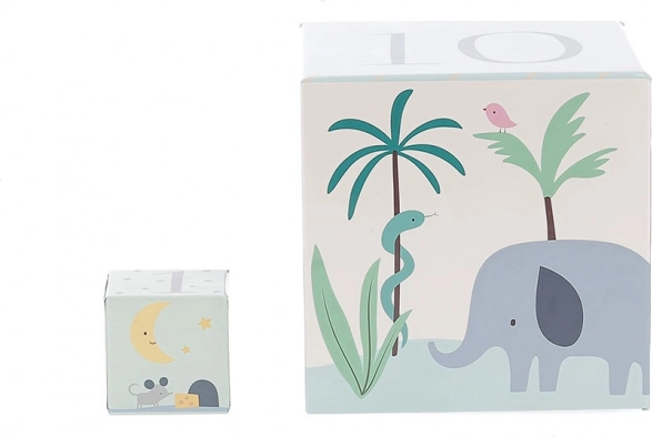 Ta prva zbirka kock se prilagaja tempu rasti vašega otroka: od preproste manipulativne igre prek gradnje stolpa do učenja števil 1–10. Vsaka kocka je okrašena z nežnimi ilustracijami živali z vsega sveta in jasnimi številkami, ki naravno vodijo k prepoznavanju in poimenovanju.