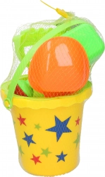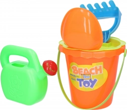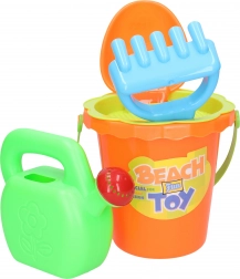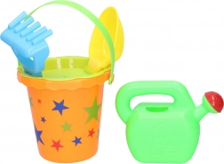 V kompletu najdete vse, kar je potrebno za gradnjo gradov, peko potičk in zalivanje: vedro, sito, zalivalko, grabljice in lopatko. Na voljo sta dve veseli barvi – rumena in oranžna, ki otrokom olajšata prepoznavanje njihovega kompleta.