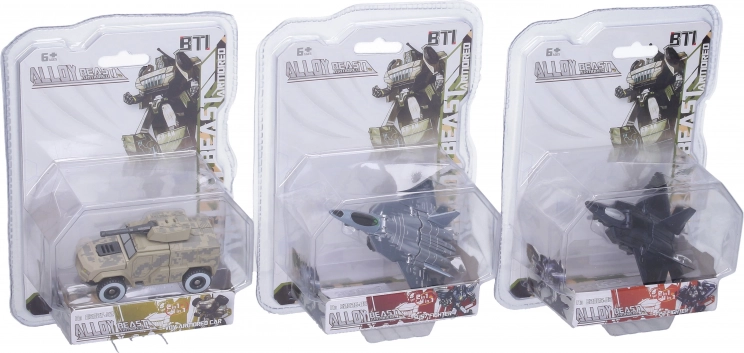 Zabaven kovinski avtorobot dolžine 11 cm, ki bo razveselil male oboževalce vojaške tehnike. Na voljo so 4 različice – svetla lovska letala, temna lovska letala, tank in vojaško vozilo. Trpežna kovinska izdelava zagotavlja dolgo življenjsko dobo in odlično igrabilnost.