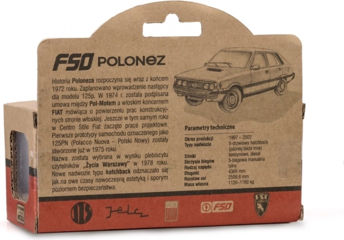 Ikona poljske avtomobilske zgodovine zdaj v vaši vitrini. Model FSO Polonez v izvedbi hatchback zvesto ujame linije in značaj izvirnika, ki je nastal v sodelovanju s FIAT-om ter zaslovel z modernim dizajnom in za svoj čas višjo stopnjo varnosti.