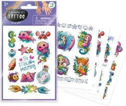 Pokažite svojo ustvarjalnost in ljubezen do morskega življenja z začasnimi tetovažami, ki so idealne za vse starostne skupine. Dovolj je, da izrežete motiv, ga pritisnete na kožo in navlažite z vodo. Po 30 sekundah preprosto odstranite papir in tetovaža bo ostala trdno na mestu.