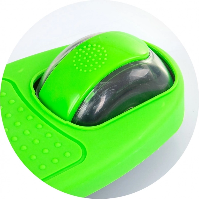 Za še bolj zabavno vožnjo skrbijo sprednje in zadnje kolo z barvnimi LED lučkami, ki zasvetijo med gibanjem. Nožna zavora na zadnjem kolesu omogoča varno in intuitivno ustavljanje, gumijasti nedrseči ročaji pa trdno ležijo v rokah.