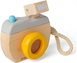 Ta lesen fotoaparat z bliskavico je idealen za prve korake v svet fotografije. Zahvaljujoč premišljenim podrobnostim, kot so »bliskavica«, gumb in izrazit objektiv, lahko otroci v celoti uživajo v igri vlog in posnemajo odrasle. Skrbno izdelan iz kakovostnega lesa in dopolnjen s tekstilno vrvico ponuja varno in vzdržljivo zabavo vsak dan.