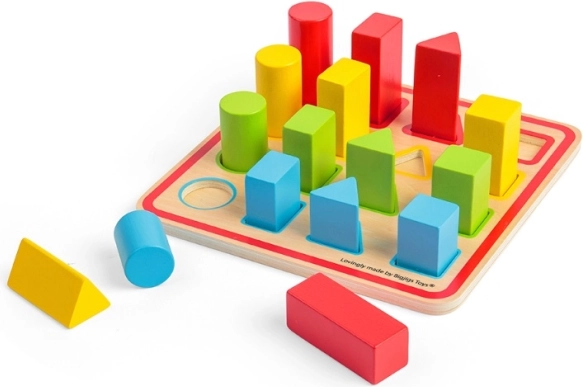 Otroci barvne oblike prirejajo ustreznim odprtinam in si tako naravno urijo logiko, zbranost in natančnost gibov.