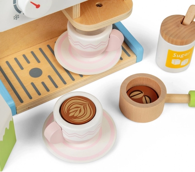 Odkrijte stilski leseni kavni aparat znamke BIGJIGS TOYS, ki otrokom na igriv način omogoča posnemanje sveta odraslih. Z odstranljivo ročico, dozatorjem mleka in nadzorno ploščo z gumbi bodo mali baristi uživali v obilici zabave ter hkrati razvijali fino motoriko, ustvarjalnost in družbene veščine. Del seta so 2 skodelici, sladkornica in mleko.