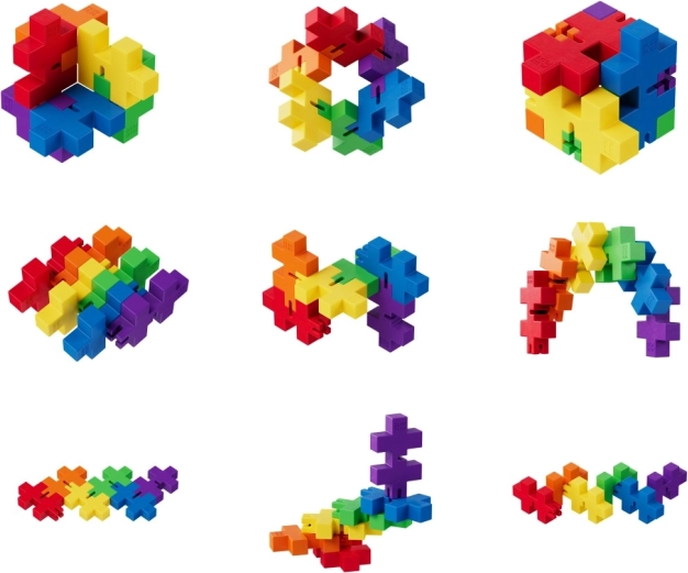Odkrijte čarovnijo Hexel Mavrica od Plus-Plus, kjer ustvarjalnost ne pozna meja! Sestavite nešteto oblik s pomočjo šestih barvnih delčkov, povezanih z elastiko.