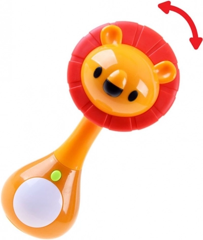 Ljubka interaktivna ropotuljica v obliki leva razveseli otroke z veselimi melodijami, svetlobnimi učinki in več načini igre. Zaradi ergonomične oblike se dobro prilega malim ročicam, izbrane mehke gumijaste dele pa je mogoče uporabljati kot grizalo. Ropotuljica ponuja 3 načine igre, svetleči trebušček menja barve in oddaja prijetne zvoke, ki spodbujajo sluh in motoriko otroka.