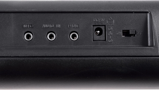 - MIC (vhod za mikrofon), AUDIO IN (line in), PHONE/LINE OUT (slušalke / izhod na zunanje zvočnike)