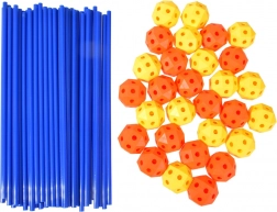 Ta univerzalni konstrukcijski set z dolgimi modrimi palicami in oranžno-rumenimi spojkami omogoča otrokom ustvarjati trajne tridimenzionalne konstrukcije. Trdne, neupogljive cevke in stabilne večkotne spojke ohranjajo obliko tudi pri večjih zgradbah. Del kompleta je tudi zvezek z idejami za hiter začetek.