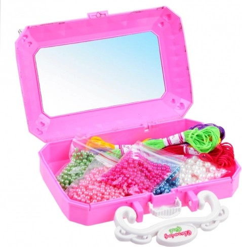 Ta ustvarjalni set za otroke je idealen za prve korake v svetu DIY nakita. Zahvaljujoč preglednim statvam za pletenje si otroci zlahka izdelajo barvite zapestnice z bleščečimi biserčki, ki razveselijo kot osebno darilo za mamo, sestro ali prijateljico. Praktična plastična skrinjica z ogledalcem pomaga ohraniti vse dodatke na enem mestu in ponuja prostor za končane izdelke.