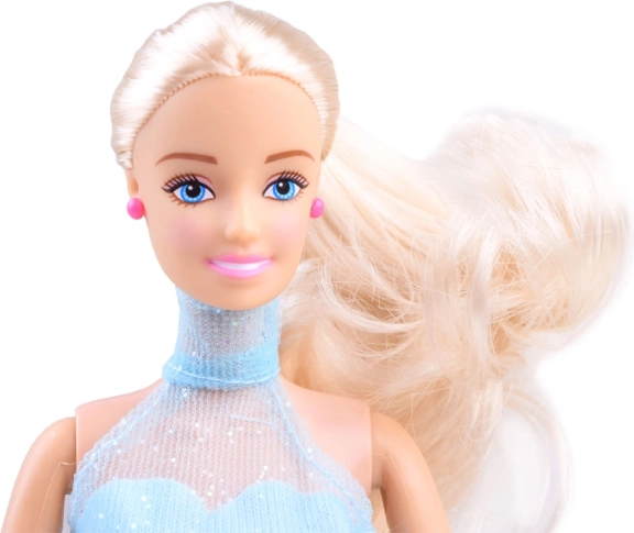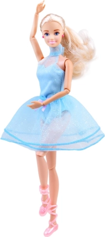 Odkrijte čar baleta s punčko Anlily v svetlo modri obleki in rožnatih baletnih čeveljcih. Zahvaljujoč sklepom v komolcih in kolenih zlahka zavzame plesne poze, zato je idealna za ustvarjalno in domišljijsko igro. Dolgi svetli lasje vabijo k česanju in oblikovanju pričesk.