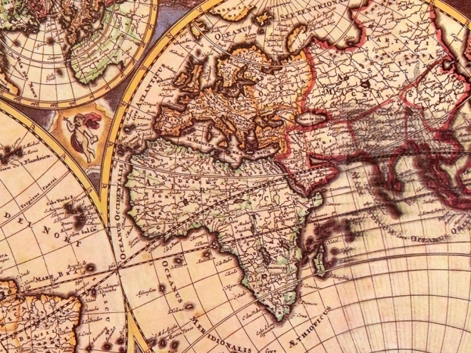 Sestavljanka s tematiko starodavnega zemljevida sveta ponuja čudovito možnost za sprostitev in razvijanje prostorske predstave. Po sestavljanju sestavljanke ustvarite sliko dimenzij približno 50 cm x 75 cm, pri čemer ima en kos dimenzije približno 3 cm x 2 cm.