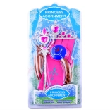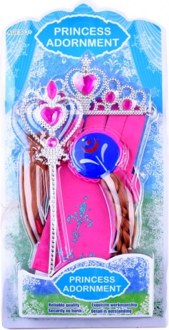 Čarobni set za princese iz pravljic bo vsaki deklici pomagal postati prava kraljica. Set vsebuje sponko za lase s kitko, krono, žezlo in lepo okrašeno rokavico.