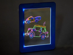 Vgrajena LED osvetlitev poudari vsak poteg flomastra in spremeni običajno risbo v sijoče delo, ki navduši podnevi in zvečer.