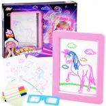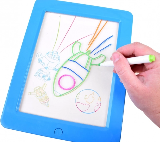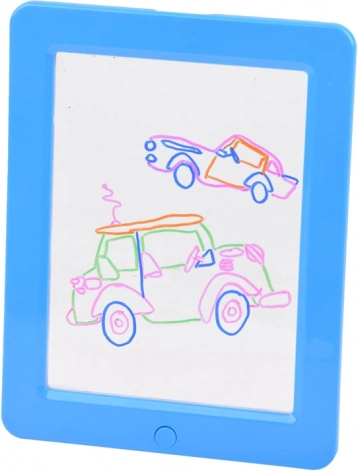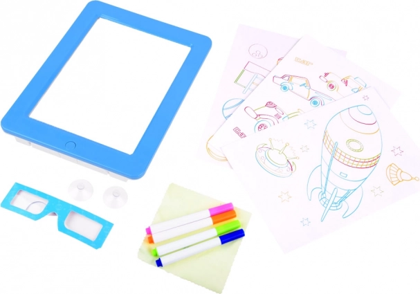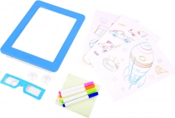 Svetleča tabla je odlično orodje za razvoj domišljije, ustvarjalnosti in fine motorike. Otroci lahko rišejo lastne motive ali preprosto prerišejo predloge s priloženih kartic in jih nato vstavijo v okvir z LED osvetlitvijo. Z nameščenimi 3D očali dobijo njihove stvaritve prostorski učinek, ki jih navduši.