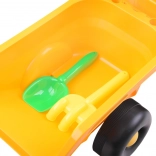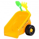Odklopna prikolica z nosilci za shranjevanje priloženih grabljic in lopatke spodbuja domišljijo ter igro na gradbišču ali v peskovniku.