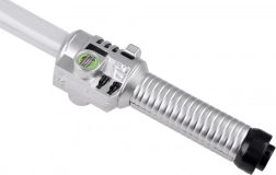 Ergonomski srebrn ročaj z gumbom za aktivacijo svetlobe in zvoka zagotavlja zanesljiv oprijem in intuitivno uporabo.