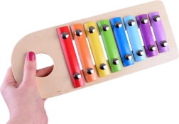 Ta leseni ksilofon vsebuje 8 kovinskih ploščic, ki omogočajo igranje celotne lestvice. Otroci lahko nežno udarjajo s palčko za mehkejše tone ali močneje za glasnejši zvok ter tako ustvarjajo zabavno glasbeno izkušnjo.
