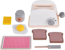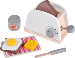Lesen komplet s toasterjem ponuja realistično igro za otroke, kjer lahko posnemajo pripravo zajtrka kot odrasli. Vsak otrok bo cenil skrbno izdelavo in naravne materiale, ki so varni za igro. Ponuja:
