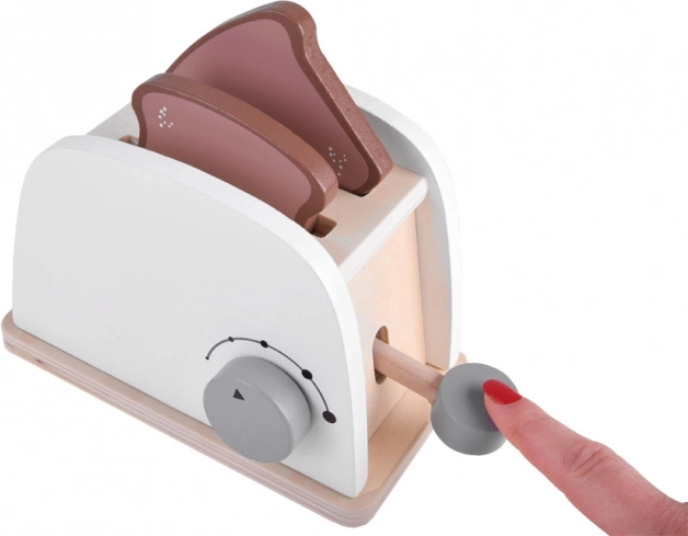 - Realistične funkcije: toaster s premično ročico in vrtljivim gumbom otrokom omogoča posnemanje priprave toastov.