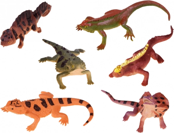 Ta pisan komplet vsebuje 6 različnih gumijastih kuščarjev z verodostojno teksturo kože in izrazitimi barvami. So lahki, trpežni in prijetni na dotik, zato odlično sedejo v otroško roko. Primerni so kot didaktični pripomoček v vrtcu ali šoli ter kot zabaven dodatek otroškim igram.
