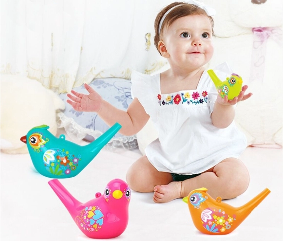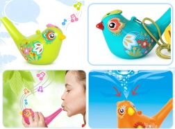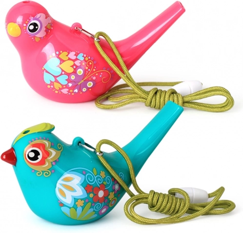 Ta vesela ptičja piščalka deluje kot klasična piščalka in kot vodna glasbena igrača. Po nalitju vode skozi odprtino na vrhu začne ob pihanju čarobno čivkati – višino in barvo tona določata količina vode in moč pihanja. Brez vode oddaja jasen in glasen zvok.