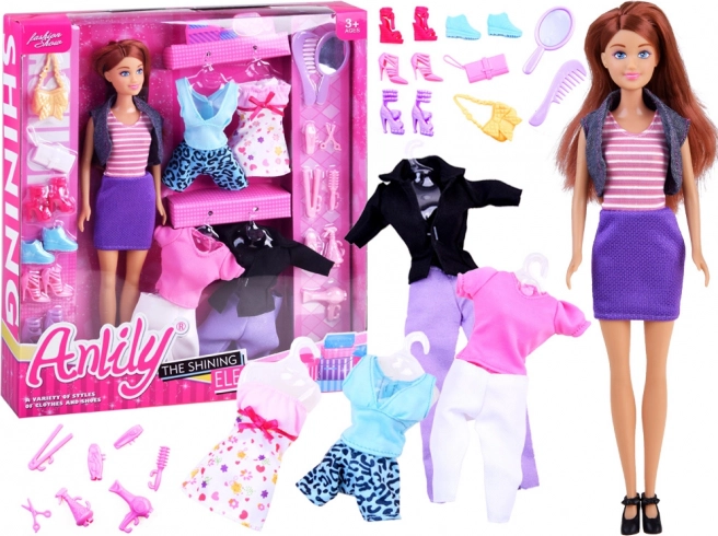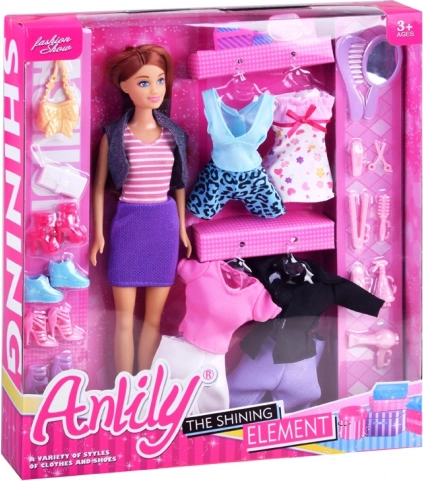 Odkrijte svet mode s punčko ANLILY in obsežnim kompletom oblačil ter dodatkov. Otroci lahko preprosto kombinirajo obleke, majice, hlače, krila in čevlje, jih dopolnijo s torbicami in uredijo pričesko s pomočjo igrač za oblikovanje. Vse to podpira domišljijo, fino motoriko in samostojno igro.