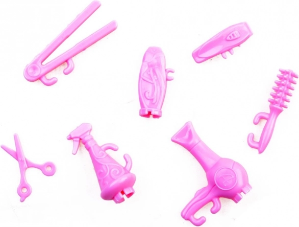 Fen, škarje, sprej, glavniki in drugi plastični dodatki podpirajo igro frizerskega salona ter razvijajo domišljijo in motoriko.