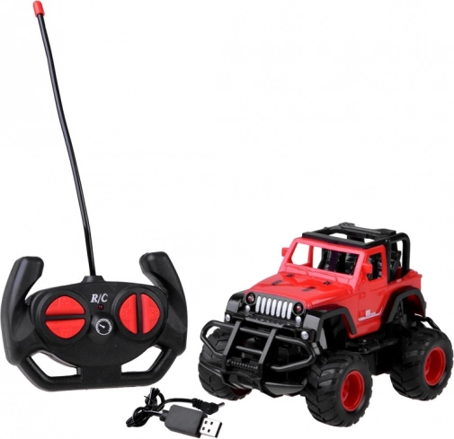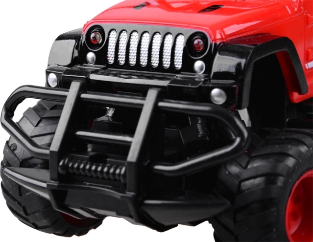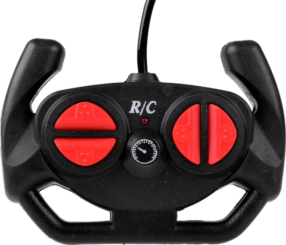 Doživite nepozabne izkušnje z našim dirkalnim terenskim vozilom, ki je popolnoma prilagojeno za off-road vožnjo zahvaljujoč gumijastim pnevmatikam s širokim tekalnim slojem. Vozilo ima svetleče luči za boljšo vidljivost in daljinski upravljalnik v obliki volana, ki vam omogoča popoln nadzor nad vozilom. Mali dirkači lahko uživajo v urah zabave na različnih pistah, ki si jih sami ustvarijo.