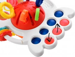 Igrača ima mehke senzomotorične gumbe, ki podpirajo manipulacijo. Otroci lahko uživajo v različnih otipnih spodbudah s pomočjo treh plastičnih obročkov z različno teksturo in površino z izrazito teksturo kroglic.