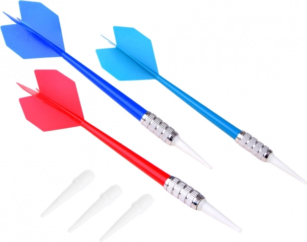 Komplet vsebuje tri puščice s kovinskimi držali in belimi plastičnimi konicami, idealne za varne notranje igre.