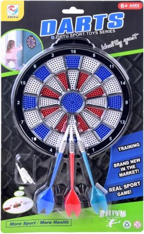 Pikado plošča je zasnovana za rekreacijsko uporabo z rdečimi, modrimi in belimi segmenti za natančno ciljanje in točkovanje.