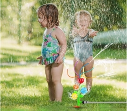 Uživajte v neskončni zabavi s tem barvnim otroškim škropilnikom, ki lahko razprši vodo v vse strani. Ob izbrizgu vode se rožice veselo vrtijo in barve se krasno mešajo, kar še bolj spodbuja igrivost in veselje.