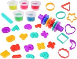 Set vsebuje vse potrebno za kreativno in izobraževalno igro, vključno z maskami, valjarjem, nožkom in šablonami.