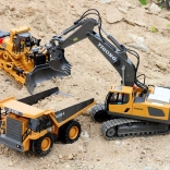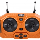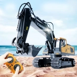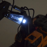 Ta RC bager v igrači velikosti navduši s precizno izdelavo in trpežno plastiko. Zahvaljujoč gumijastim gosenicam se zanesljivo premika tudi po neravni podlagi, roka se dviguje in spušča, žlica pa zajema material kot v resnici. LED luči in zvoki motorja poudarijo realističen vtis.