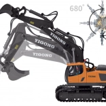 Ergonomski upravljalnik 2,4 GHz zagotavlja stabilen doseg brez motenj in omogoča vožnjo naprej/nazaj, zavijanje desno/levo, vrtenje na mestu ter popolno upravljanje roke in žlice. Na voljo je tudi demo način. Bager ima odpirajoč se pokrov motorja in kakovostno izdelavo za dolgo življenjsko dobo.