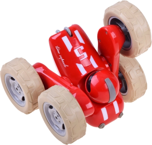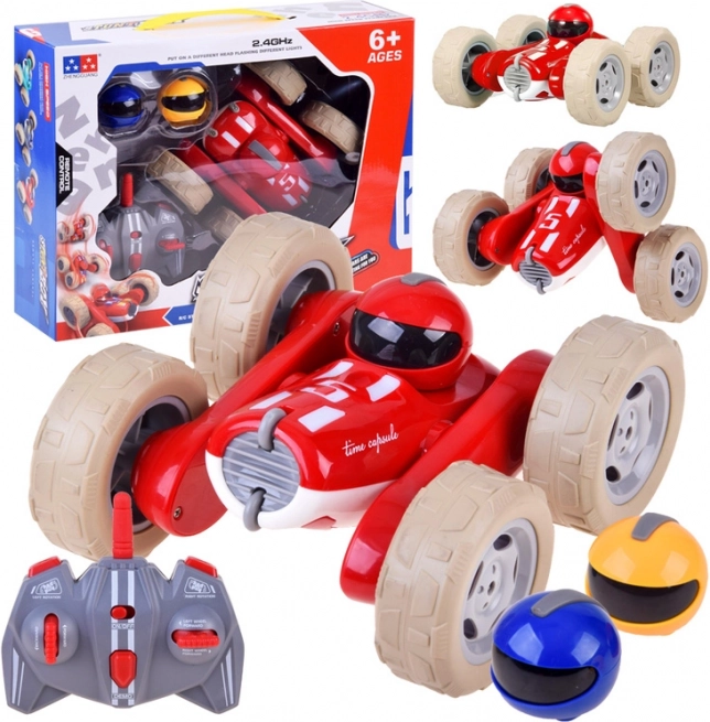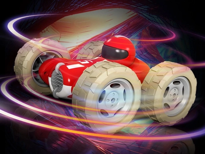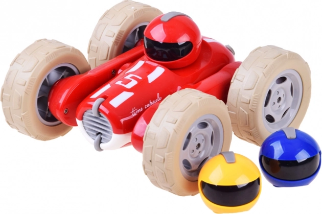 Podajte se v akcijo z akrobatskim RC avtom, ki obvlada 360° obrate, premete in se zlahka spopade z manjšimi ovirami. Robustna konstrukcija, pogon na vsa kolesa in neodvisne osi koles zagotavljajo stabilnost tudi pri odbitkih od stene. Čelade v različnih barvah ne le aktivirajo vozilo, temveč tudi osvetlijo podvozje v izbrani barvi – učinek, ki ga imajo otroci radi.