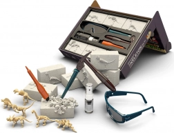 Set je idealen kot kreativno in izobraževalno darilo za radovedne otroke. Postopek je preprost: navlažiti, previdno z dletom in kladivcem odkrivati, prah pomesti s čopičem in na koncu okostje sestaviti. Rezultat je mala domača zbirka šestih dinozavrskih modelov.