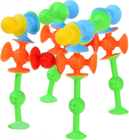Komplet silikonskih priseskov je idealen za otroke in odrasle. Prilagodljivi delčki se zlahka povezujejo s sesanjem – ustvarjajte stolpe, figurice, mostove, stojala za telefon ali okraske za okna in ploščice. Zaradi oprijema na gladkih površinah (steklo, okno, hladilnik, namizna plošča) se z njimi lahko zabavate v vsakem prostoru in med kopanjem.