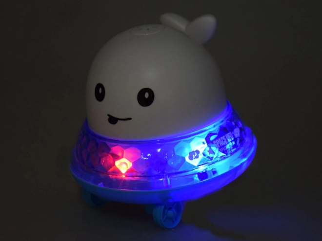 Ta interaktivna igrača združuje veselje do vode in vožnje. Kitka je idealna za kad, bazen ali plitvino – po potopitvi se sama zažene in ustvari učinek brizgajoče fontanice s svetlobno predstavo. Po kopanju zabava ne konča: postavite jo na platformo, vklopite in opazujte, kako se zapelje z barvno osvetlitvijo in glasbo.