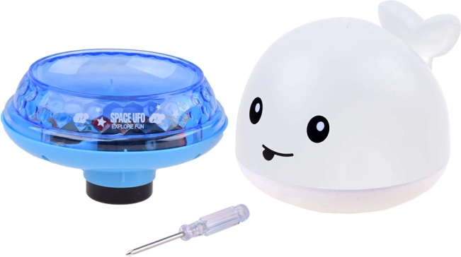 Po potopitvi se kita sama zažene, prši vodo in žari v barvah – popolno popestritev večerne kopeli.