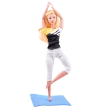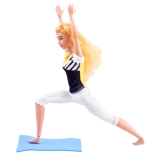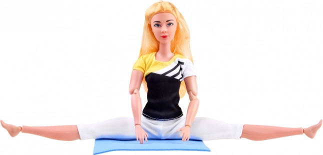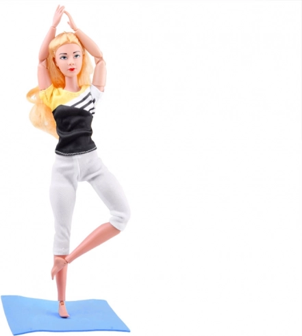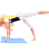 Fleksibilna punčka z dolgimi blond lasmi je oblečena v športni komplet z elastičnimi pajkicami in topom, da lahko udobno vadi. Sklepna konstrukcija omogoča realistično nastavitev rok, nog in trupa, zato zlahka posnema priljubljene asane in gimnastične položaje.