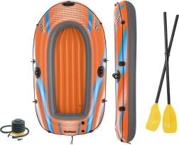 Paket vključuje vso potrebno opremo za takojšnjo uporabo – par vesel, nožno tlačilko in popravljalni obliž. Čoln je izdelan iz trpežnega PVC materiala, preizkušenega za vodne razmere.