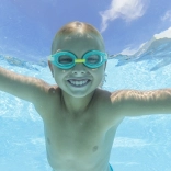 Polikarbonatne leče s protirosno obdelavo in UV zaščito zagotavljajo čist pogled ter hkrati ščitijo otrokove oči pri plavanju in potapljanju.