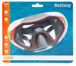 Otrokom zagotovite varne in zabavne prve korake pod vodo. Maska Bestway Crusader združuje trpežne materiale brez lateksa z udobnim tesnjenjem, ki zanesljivo preprečuje vdor vode. Zaradi živih barv je maska v vodi dobro vidna in jo je enostavno namestiti.