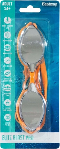 Lahka in udobna plavalna očala Bestway Elite Blast Pro za starost 14+ ponujajo zrcalno polikarbonatno lečo z UV zaščito in premazom proti rosenju. Zahvaljujoč mehkim silikonskim tesnilom in hitri nastavitvi paščka odlično pristajajo, ne puščajo in zagotavljajo čist pogled pod vodo.